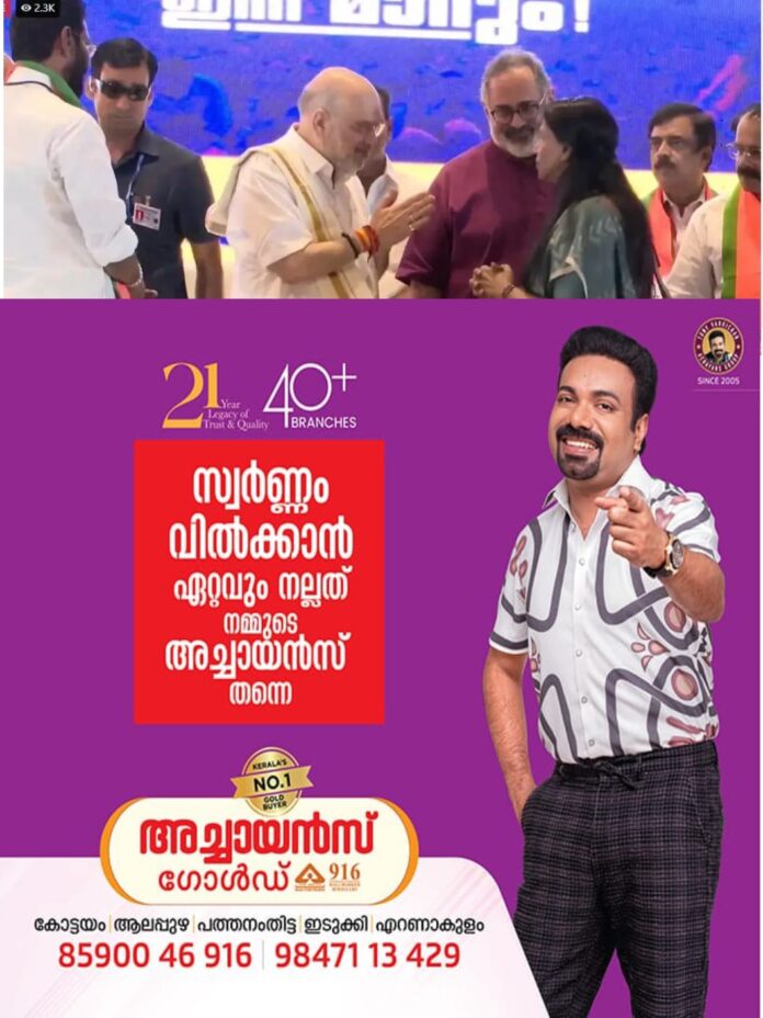 അതിനാലാണ് ബിജെപി എല്ലവർക്കും തുല്യനീതി എന്ന നയം എടുത്തിരിക്കുന്നത്. – ബിജെപിയുടെ കേരള സുരക്ഷിതനയം പറയുന്നത് എല്ലാവർക്കു വിശ്വാസം സംരക്ഷിക്കാനാകുമോ? കേരളത്തിന്റെ അടിസ്ഥാന വിശ്വാസം സംരക്ഷിക്കാനാകുമെങ്കില്‍ അത് ബിജെപിക്കു മാത്രമാണ്കേ കേരളത്തിലെ മുഖ്യമന്ത്രിയോടു പറയട്ടെ ശബരിമലയിലെ സ്വർണ്ണക്കൊള്ള കേരളത്തിലെ മാത്രമല്ല, രാജ്യത്തെ മുഴുവൻ ജനങ്ങളുടെയും വിശ്വാസത്തിന്റെ പ്രശ്‌നമാണ്. ഞാൻ അതിന്റെ പ്രഥമവിവര റിപ്പോർട്ടു കണ്ടു. അതില്‍ കുറ്റവാളികള്‍ക്ക് രക്ഷപ്പെടാനുള്ള പഴുതുകള്‍ക്കുള്ള വൈറസുകള്‍ ഉണ്ട്.