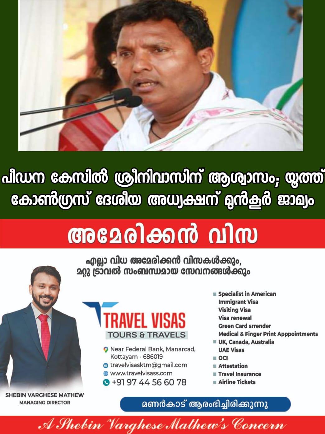 പീഡന കേസില് ശ്രീനിവാസിന് ആശ്വാസം; യൂത്ത് കോണ്ഗ്രസ് ദേശീയ അധ്യക്ഷന് മുന്കൂര് ജാമ്യം