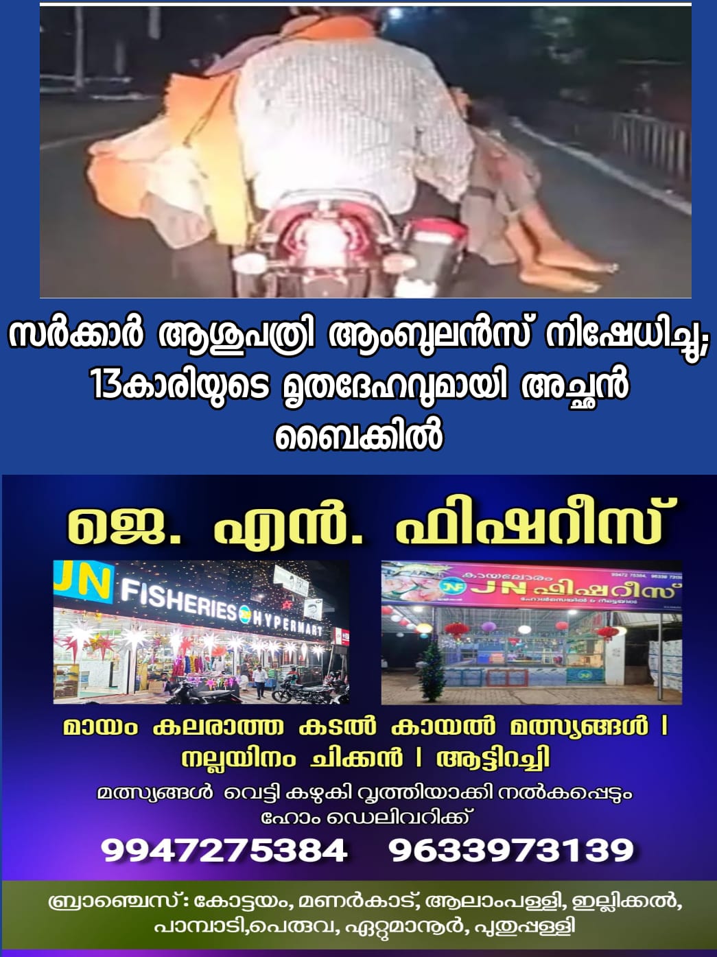സർക്കാർ ആശുപത്രി ആംബുലൻസ് നിഷേധിച്ചതിനെ തുടർന്ന് ബൈക്കിൽ മകളുടെ മൃതദേഹവുമായി അച്ഛൻ