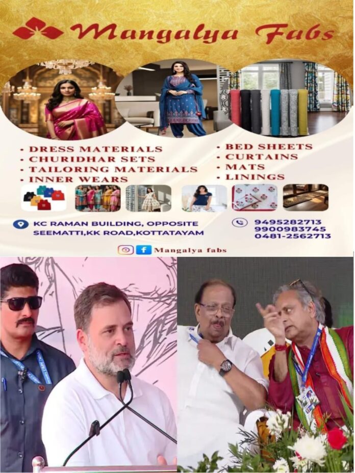 കൊച്ചിയില് നടന്ന കോണ്ഗ്രസ് മഹാ പഞ്ചായത്ത് യോഗത്തില് തന്നെ രാഹുല് ഗാന്ധി അവഗണിച്ചതില് ശശി തരൂർ കടുത്ത അതൃപ്തിയിലാണെന്നാണ് റിപ്പോർട്ട്.