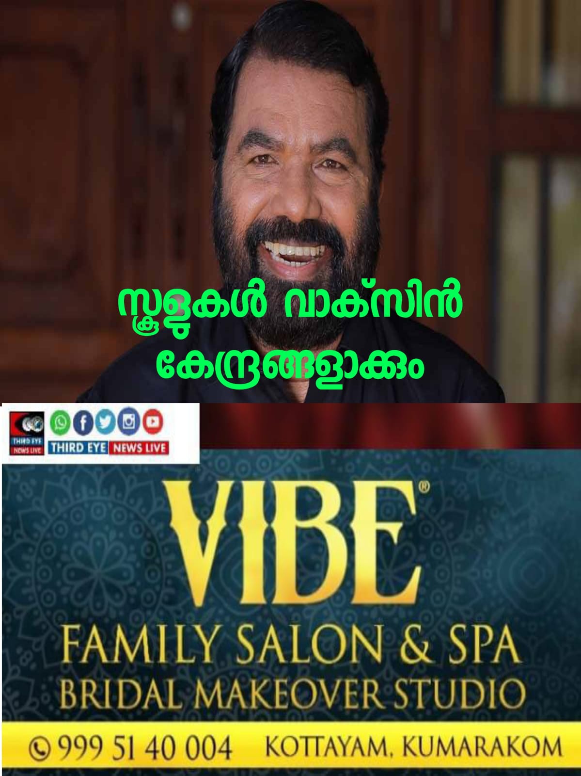 തിരുവനന്തപുരം: സ്കൂളുകൾ കുട്ടികൾക്കുള്ള വാക്സിനേഷൻ കേന്ദ്രങ്ങളാക്കുമെന്ന് വിദ്യാഭ്യാസമന്ത്രി വി ശിവൻകുട്ടി. വാക്സിനെടുക്കാത്ത കുട്ടികളുടെ കണക്കെടുക്കാൻ ക്ലാസ് ടീച്ചേഴ്സിന് ചുമതല നൽകി. കുട്ടികളുടെ എണ്ണമനുസരിച്ച് വാക്സിനേഷൻ കേന്ദ്രം ക്രമീകരിക്കും. സ്കൂളുകളിൽ കൊവിഡ് മാനദണ്ഡങ്ങൾ പാലിക്കാൻ മന്ത്രി നിർദേശം നൽകി.