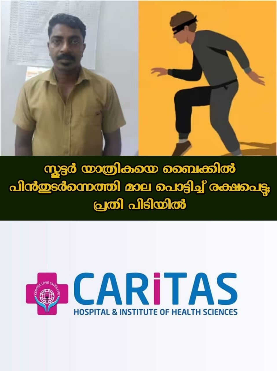 മാല പിടിച്ചു പറിച്ചതിന്റെ ആഘാതത്തിൽ യുവതി താഴെ വീഴുകയും അലറി വിളിക്കുകയും ചെയ്തു. എന്നാൽ വെളുപ്പിനെ ആയതിനാൽ അവിടെ ആരുമുണ്ടായിരുന്നില്ല. യുവതി പുറകെ ഓടിയെങ്കിലും, പ്രതി സ്പീഡിൽ ബൈക്കിൽ പോകുകയായിരുന്നു. തുടർന്ന് യുവതി ഹരിപ്പാട് പൊലീസ് സ്റ്റേഷനിൽ പരാതി നല്‍കി. നിരവധി സിസിടിവി ദൃശ്യങ്ങൾ പരിശോധന നടത്തിയതിൽ നിന്നും പ്രതി ഉപയോഗിച്ചത് നമ്പർ പ്ലേറ്റ് ഇല്ലാതെ ഹീറോ ഹോണ്ട ഗ്ലാമർ എന്ന വണ്ടി ആണെന്ന് മനസിലാക്കി.