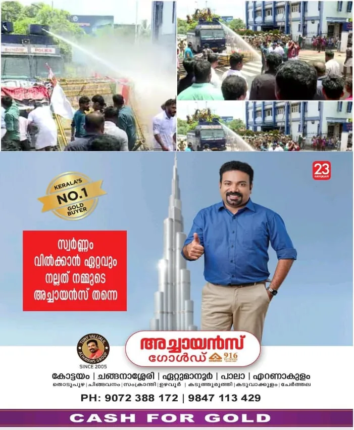 എഡിജിപി എം ആർ അജിത്കുമാറിനെതിരേയും പി ശശിക്കെതിരെയും ഉയർന്ന, ആരോപണങ്ങളിൽ മുഖ്യമന്ത്രി രാജിവെക്കണമെന്നാവശ്യപ്പെട്ട് യൂത്ത് കോൺഗ്രസ് സെക്രട്ടറിയേറ്റ് മാർച്ചിൽ സംഘർഷം; ജലപീരങ്കി പ്രയോഗിച്ച് പോലീസ്