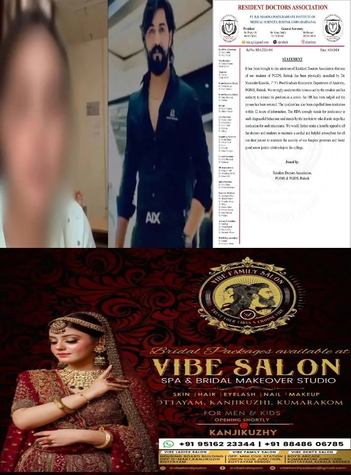 സീനിയര് ഡോക്ടര് പീഡിപ്പിച്ചെന്നും മര്ദ്ദിച്ചെന്ന പരാതിയുമായി റോഹ്തക്കിലെ പിജിഐയില് (പോസ്റ്റ്ഗ്രാജുവേറ്റ് ഇന്സ്റ്റിറ്റ്യൂട്ട് ഓഫ് മെഡിക്കല് എഡ്യുക്കേഷന് ആന്ഡ് റിസര്ച്ച്) നിന്നുള്ള ഒന്നാം വർഷ ബിഡിഎസ് വിദ്യാർഥിനിയാണ് രംഗത്തെത്തിയിരിക്കുന്നത്.