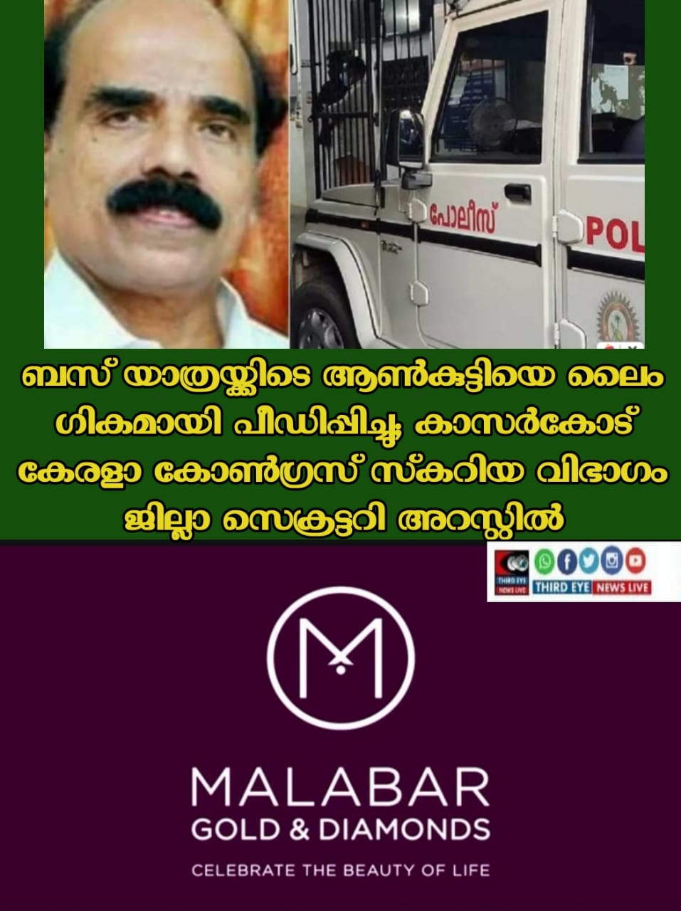 ബസ് യാത്രയ്ക്കിടെ ആൺകുട്ടിയെ ലൈം​ഗികമായി പീഡിപ്പിച്ചു; കാസർകോട് കേരളാ കോൺഗ്രസ് സ്‌കറിയ വിഭാഗം ജില്ലാ സെക്രട്ടറി അറസ്റ്റിൽ