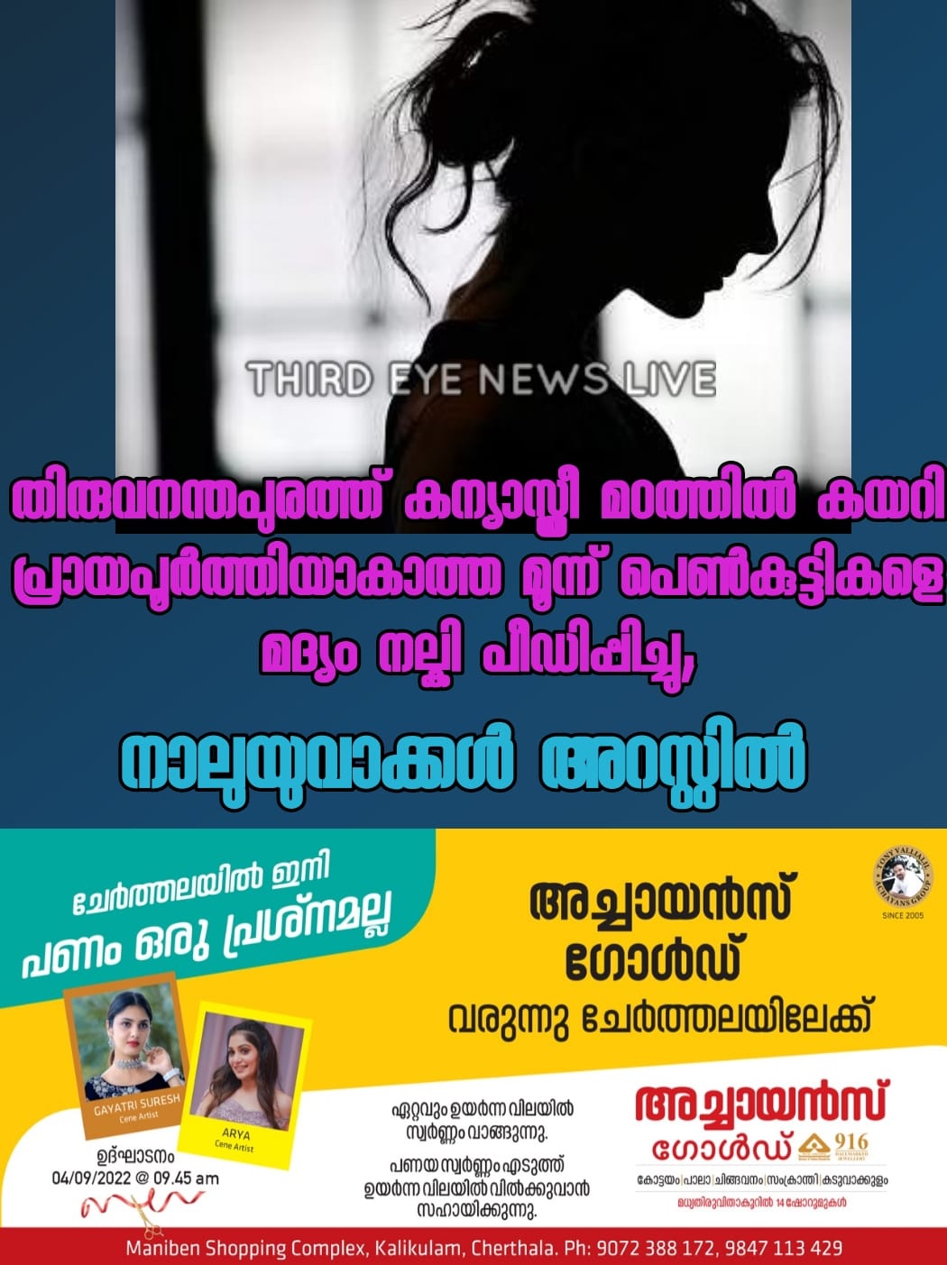 തുടര്ന്ന് പ്രതികള് പെണ്കുട്ടികളെ പീഡിപ്പിക്കുകയായിരുന്നു. പീഡനത്തിന് ശേഷം മതില്ചാടി പുരത്തുവരുമ്പോഴാണ് പൊലീസിന് മുന്നില്പ്പെടുന്നത്. വലിയതുറ സ്വദേശികളായ മേഴ്സണ്, രഞ്ജിത്ത്, അരുണ് എന്നിവരാണ് പിടിയിലായത്.