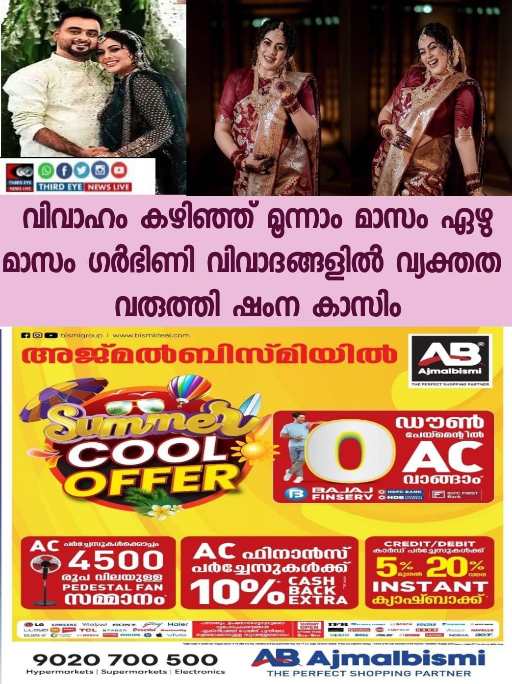 പല യൂട്യൂബ് ചാനലുകളിലും നിരവധി തലക്കെട്ടുകളിൽ തന്നെ പറ്റിയുള്ള വാർത്തകൾ പ്രചരിക്കുന്നത് ശ്രദ്ധയിൽപ്പെട്ടിരുന്നു എന്ന് നടി ഷംന കാസിം. വിവാഹം കഴിഞ്ഞ് രണ്ട് മാസത്തിനുള്ളിൽ ബേബി ഷവർ