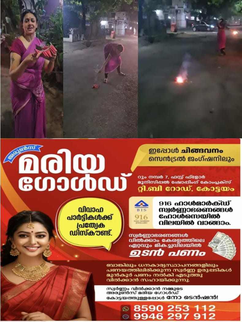 പടക്കം പൊട്ടിക്കാന് പാടുപെടുന്ന ശോഭനയെ വീഡിയോയില് കാണാം. റോഡില് പടക്കം കൊണ്ടുവെയ്ക്കുന്ന ശോഭന അത് കത്തിക്കാന് ശ്രമിക്കുന്നതാണ് വീഡിയോയുടെ തുടക്കം. എന്നാല് ആദ്യ രണ്ട് ശ്രമങ്ങളും വിജയിക്കുന്നില്ല. എന്നിട്ടും ശോഭന പിന്മാറിയില്ല. മൂന്നാം ശ്രമത്തില് പടക്കത്തിന് തീപിടിച്ചു. പിന്നാലെ പേടിച്ച് ഓടിരക്ഷപ്പെടുന്ന ശോഭനയേയും വീഡിയോയില് കാണാം.