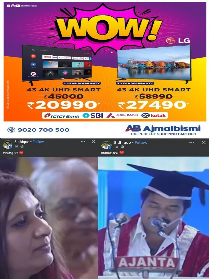 ‘അങ്ങനെ എന്റെ വാപ്പയുടെ ഡോക്ടര് സ്വപ്നം തകര്ന്നു. പതിറ്റാണ്ടുകള് കഴിഞ്ഞെങ്കിലും എന്റെ അഭിനയത്തികവും കലാരംഗത്തെ നേട്ടങ്ങളും കണക്കിലെടുത്ത് എന്നെ വലുതാക്കിയ എന്റെ സര്വകലാശാല ഡോക്ടറേറ്റ് നല്കുമ്ബോള് ആ ബഹുമതി എന്റെ ബാപ്പയുടെ സ്മരണയ്ക്ക് മുമ്ബില് ഞാൻ സമര്പ്പിക്കുകയാണ്.’എന്നാണ് സിദ്ദീഖ് പങ്കുവെച്ച പ്രസംഗത്തില് മമ്മൂട്ടി പറഞ്ഞത്.