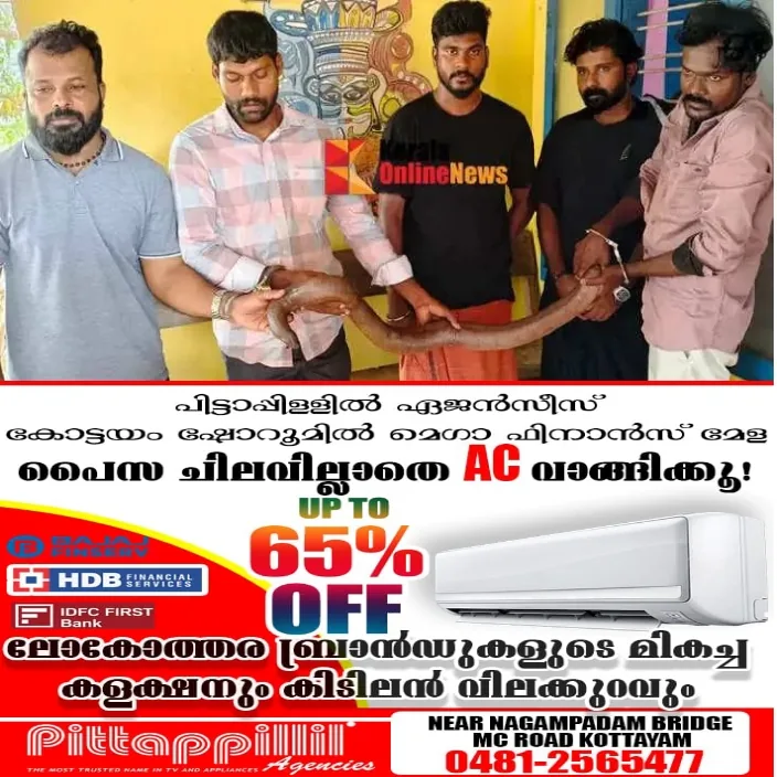കണ്ണൂര്‍ പയ്യന്നൂരില്‍ ഇരുതല മൂരിയുമായി അഞ്ചുപേര്‍ പിടിയില്‍