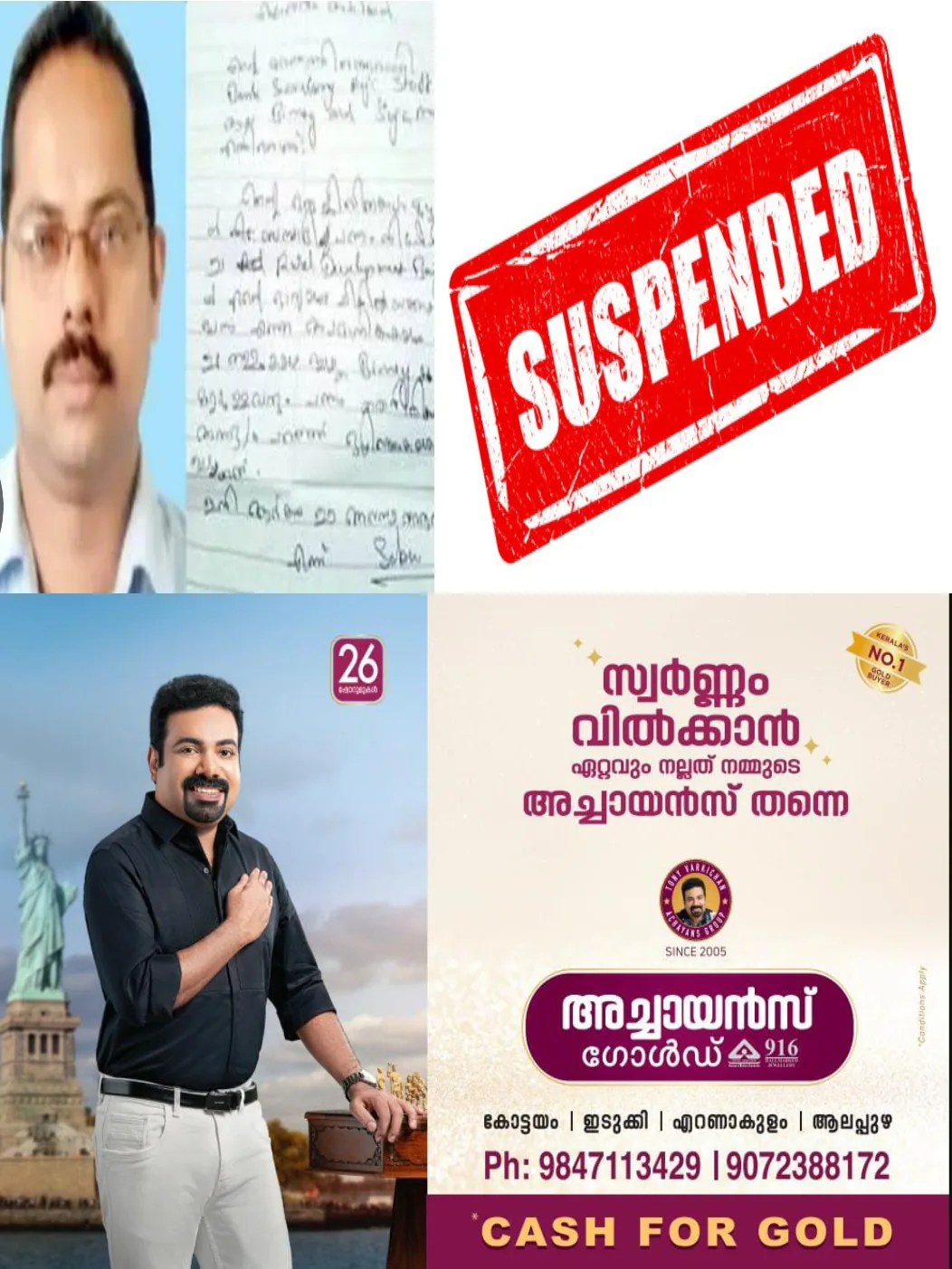 റൂറൽ ഡെവലപ്മെന്റ് കോ-ഓപ്പറേറ്റീവ് സൊസൈറ്റി സെക്രട്ടറി റെജി എബ്രഹാം, സീനിയർ ക്ലർക്ക് സുജാ മോൾ ജൂനിയർ ക്ലർക്ക് ബിനോയ് എന്നിവർക്കാണ് സസ്പെൻഷൻ ലഭിച്ചിരിക്കുന്നത്.