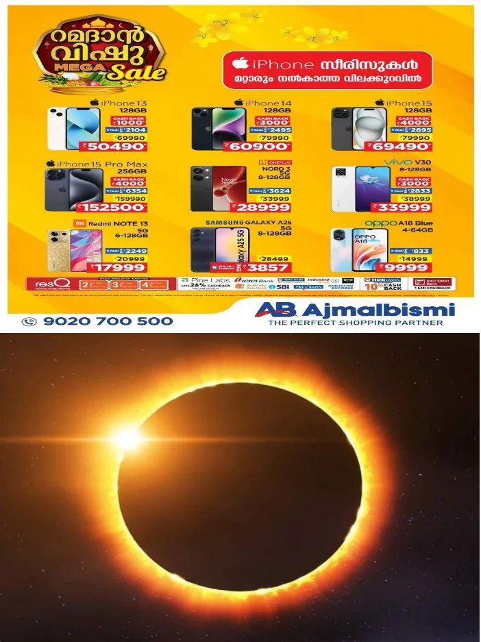 അതേസമയം, ഇന്ത്യയുടെ പ്രഥമ സൗരദൗത്യം ആദിത്യ എല് -1 സൂര്യനെക്കുറിച്ച് തുടർച്ചയായി പഠിക്കുന്നുണ്ടെങ്കിലും സമ്പൂർണ സൂര്യഗ്രഹണത്തിനു സാക്ഷിയാകില്ല. സൂര്യനെ എപ്പോഴും തടസ്സമില്ലാതെ കാണാൻ സാധിക്കുന്ന രീതിയിലാണ് ഉപഗ്രഹം നിലയുറപ്പിച്ചിട്ടുള്ളത്. ഗ്രഹണം കാരണം ഉപഗ്രഹത്തിന്റെ കാഴ്ച ഒരിക്കലും തടസ്സപ്പെടരുതെന്ന് ഐഎസ്ആർഒ മുൻകൂട്ടി നിശ്ചയിച്ചിരുന്നു.