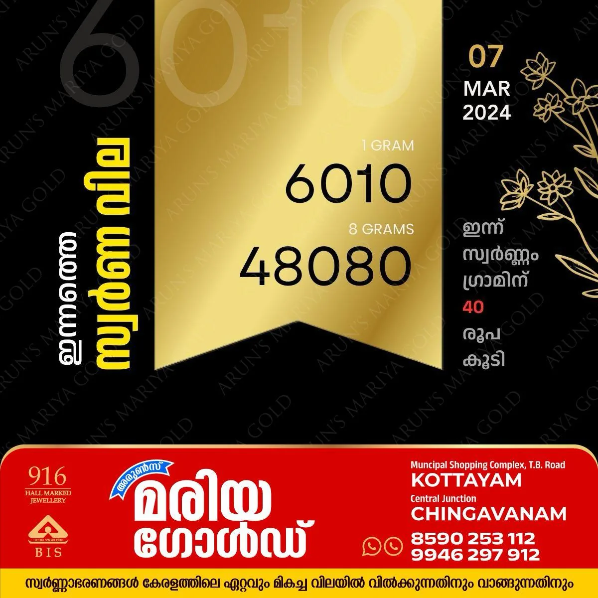 അരുൺസ് മരിയഗോൾഡ് സ്വർണ്ണ വില അറിയാം