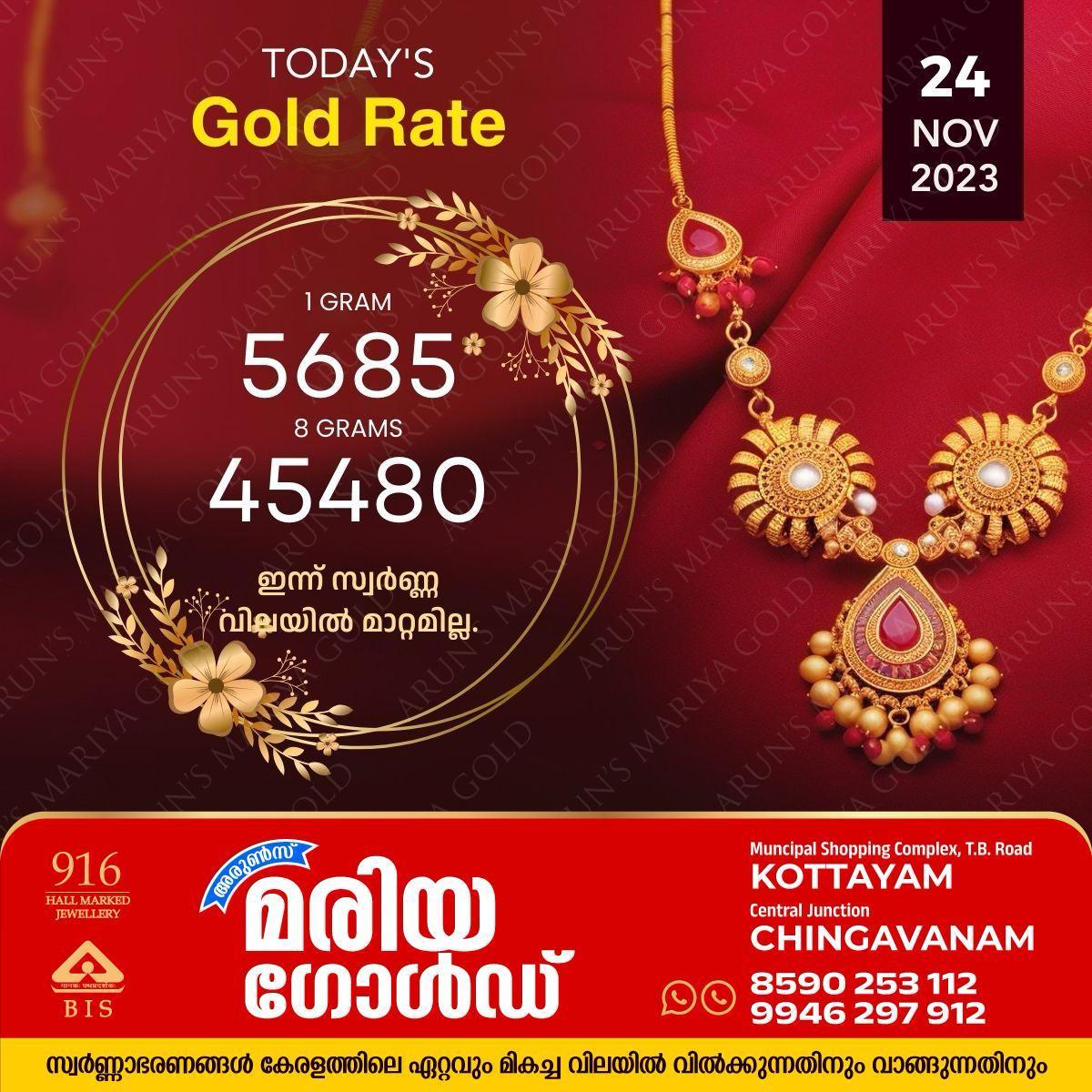സംസ്ഥാനത്ത് ഇന്ന് (24/11/2023) സ്വർണവിലയിൽ മാറ്റമില്ല; പവന് 45,480 രൂപ ; അരുൺസ് മരിയ ​ഗോൾഡ് സ്വർണവില അറിയാം