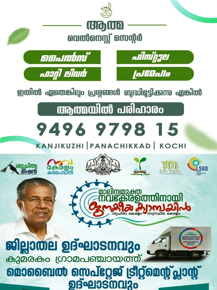 കുമരകം: മാലിന്യ മുക്ത നവകേരളത്തിനായി ജനകീയ ക്യാമ്പയിൻ ശുചിത്വ കേരളം സുസ്ഥിര കേരളം ജില്ലാതല ഉദ്ഘാടനവും കുമരകം ഗ്രാമപഞ്ചായത്ത് മൊബൈൽ സെപ്റ്റേജ് ട്രീറ്റ്മെന്റ് പ്ലാന്റ് ഉദ്ഘാടനവും നാളെ കുമരകത്ത് സഹകരണം തുറമുഖ, ദേവസ്വം മന്ത്രി വി.എൻ. വാസവൻ നിർവഹിക്കും.