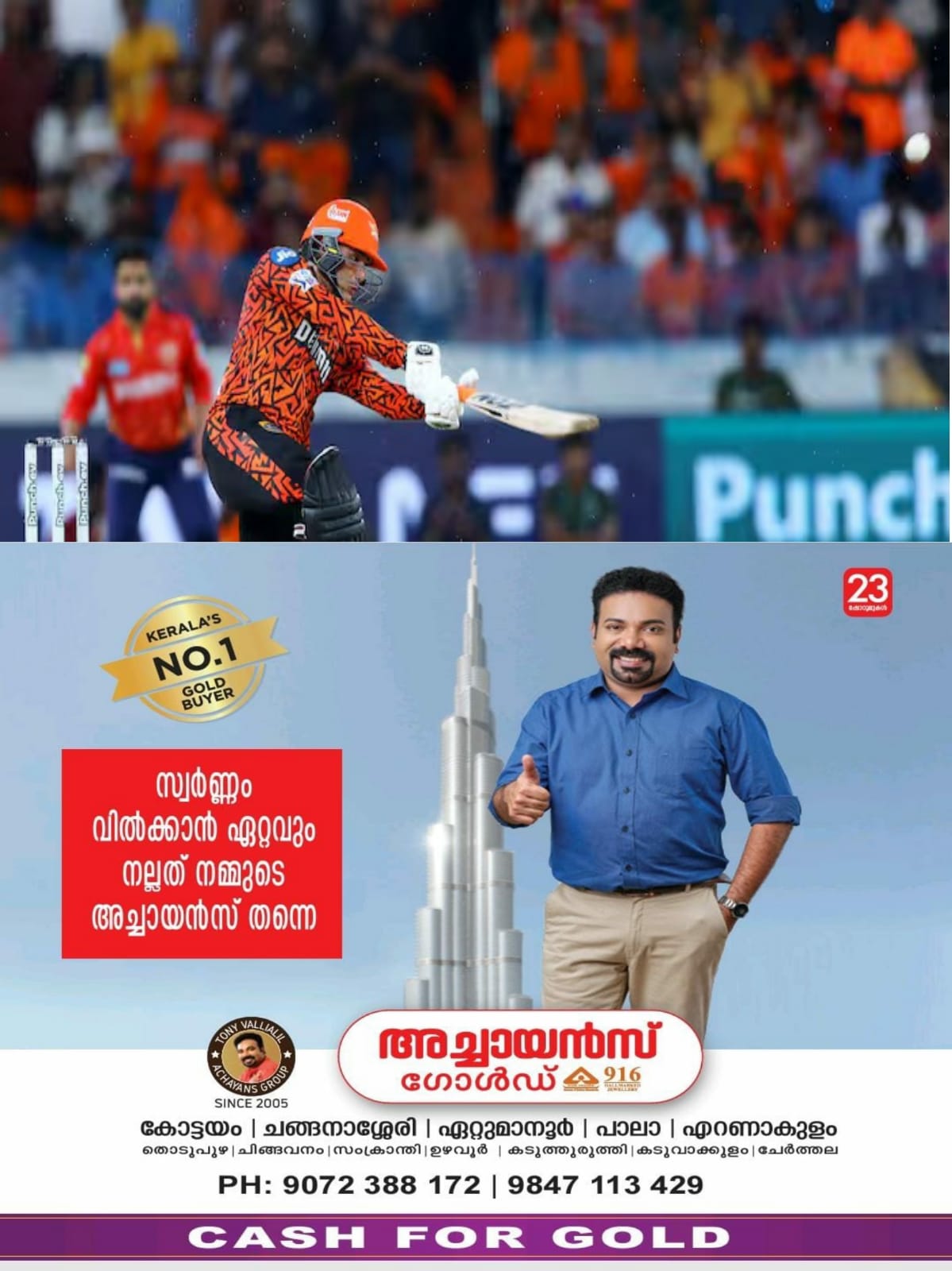 പഞ്ചാബ് ഉയർത്തിയ കൂറ്റൻ വിജയലക്ഷ്യത്തിലേക്ക് ബാറ്റേന്തുമ്പോൾ ഹൈദരാബാദ് ഓപ്പണർമാർമാരുടെ മുഖത്ത് ആശങ്കയുണ്ടായിരുന്നില്ല. മറിച്ച് ലക്ഷ്യം മറികടക്കാമെന്നുള്ള ആത്മവിശ്വാസമായിരുന്നു. അത് അന്വർഥമാക്കുന്ന കാഴ്ചയായിരുന്നു പിന്നീട് രാജീവ് ഗാന്ധി അന്താരാഷ്ട്ര സ്റ്റേഡിയത്തിൽ കണ്ടത്. ട്രാവിസ് ഹെഡും അഭിഷേക് ശര്മയും കത്തിക്കയറി. സണ്റൈസേഴ്സ് ആദ്യ നാലോവറില് തന്നെ അമ്പതിലെത്തി. പവര്പ്ലേ കഴിയുമ്പോള് സ്കോര് 83 ലും. അഭിഷേക് ശര്മയായിരുന്നു കൂടുതല് അപകടകാരി. ഏഴാം ഓവറില് അഭിഷേക് അര്ധസെഞ്ചുറി തികച്ചു. അതും 19 പന്തില് നിന്ന്.