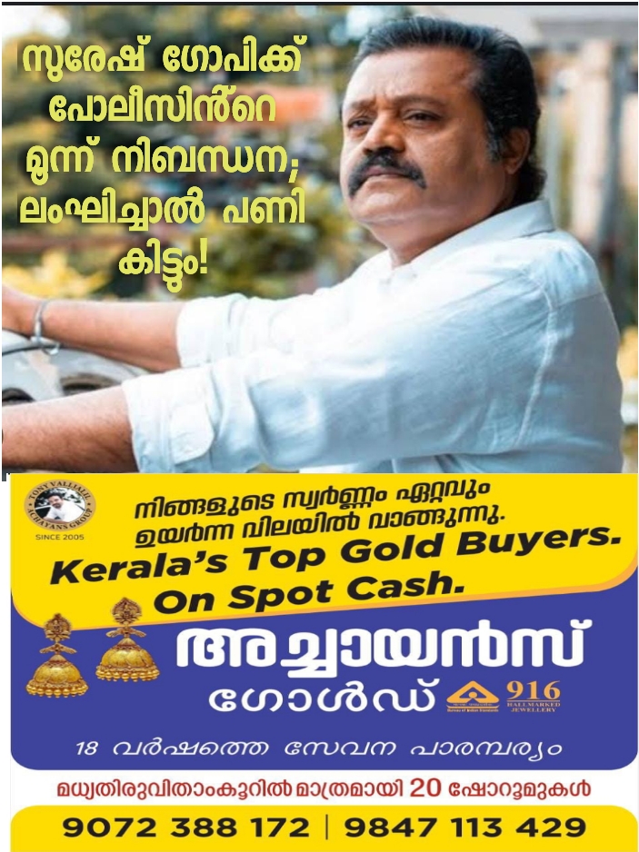 വച്ചത് മൂന്ന് നിബന്ധന,ലംഘിച്ചാൽ പണി കിട്ടും;മാധ്യമപ്രവര്‍ത്തകയോട് അപമര്യാദയായി പെരുമാറിയെന്ന കേസില്‍ സുരേഷ് ഗോപിക്ക് മുൻപിൽ പോലീസ് വച്ചത് മൂന്ന് നിബന്ധന.കൂടുതൽ വകുപ്പുകൾ ചുമത്തിയേക്കാം.