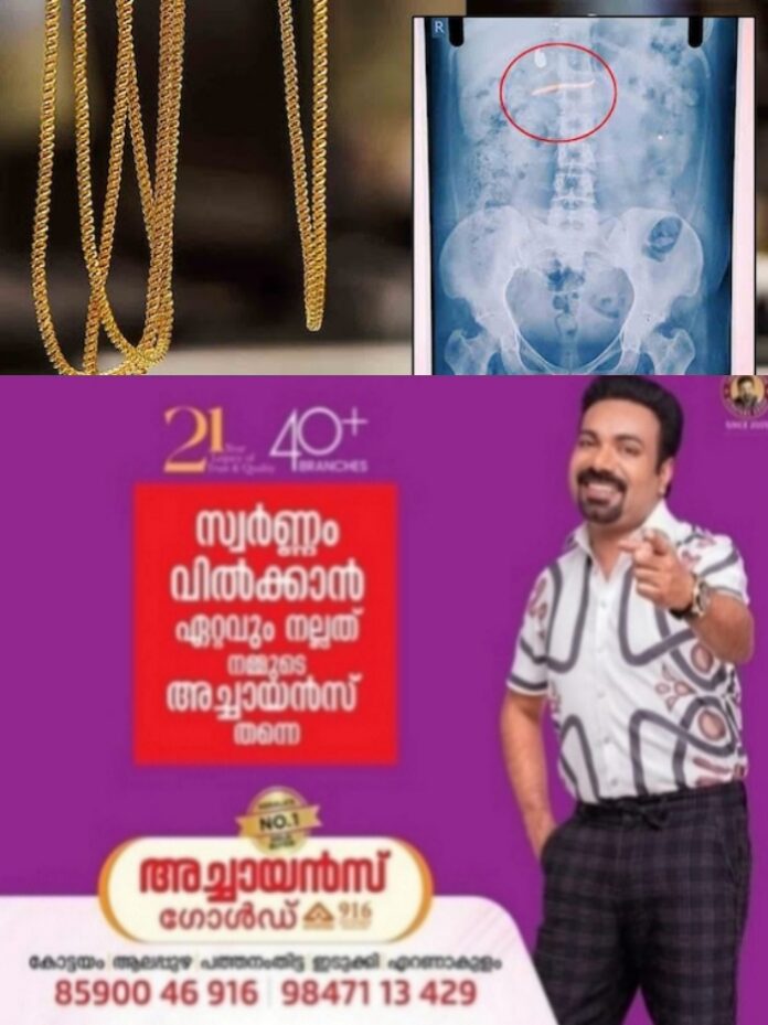 നാട്ടുകാർ തടഞ്ഞുവച്ച യുവതിയെ പൊലീസ് കസ്റ്റഡിയിലെടുത്ത് സ്റ്റേഷനിൽ എത്തിച്ച് ചോദ്യം ചെയ്തു. കുറ്റം നിഷേധിച്ചതിനെത്തുടർന്ന് ജില്ലാ ആശുപത്രിയിൽ കൊണ്ടുപോയി എക്സ്റേ പരിശോധന നടത്തി. തുടർന്ന് ആഭരണം വയറ്റിലുണ്ടെന്ന് കണ്ടെത്തി.