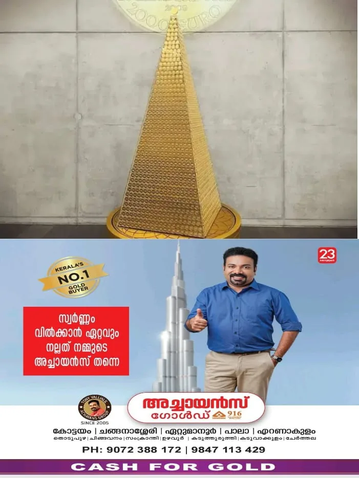 പ്രോ ഔറം എന്ന സ്വർണ വ്യാപാര സ്ഥാപനം ആരംഭിച്ചിട്ട് 35 വർഷങ്ങള്‍ കഴിഞ്ഞു. വാർഷികാഘോഷങ്ങളുടെ ഭാഗമായി കൂടിയാണ് പത്തടിയോളം ഉയരമുള്ള ക്രിസ്മസ് ട്രീ തയ്യാറാക്കിയിരിക്കുന്നത്. ക്രിസ്മസ് ട്രീക്ക് മുകളില്‍ സ്റ്റാറിന് പകരമായി സ്വർണ നാണയമാണ് ഉപയോഗിച്ചിരിക്കുന്നത്.