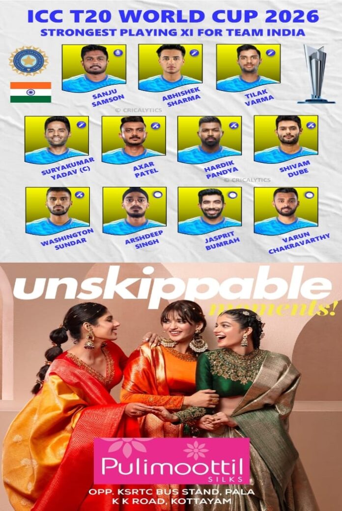 സൂര്യകുമാര് യാദവ് (ക്യാപ്റ്റന്), അഭിഷേക് ശര്മ, തിലക് വര്മ, അക്ഷര് പട്ടേല്, ഹര്ദിക് പാണ്ഡ്യ, ശിവം ദുബെ, സഞ്ജു സാംസണ് (വിക്കറ്റ് കീപ്പര്), ഇഷാന് കിഷന്, വാഷിങ്ടന് സുന്ദര്, കുല്ദീപ് യാദവ്, വരുണ് ചക്രവര്ത്തി, റിങ്കു സിങ്, ജസ്പ്രിത് ബുംറ, ഹര്ഷിത് റാണ, അര്ഷ്ദീപ് സിങ്.