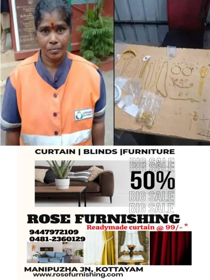 ശുചീകരണത്തിനിടെയാണ് വഴിയോരത്ത് നിന്ന് സ്വർണമടങ്ങിയ ബാഗ് പത്മയ്ക്ക് കിട്ടിയത്. പരിശോധിച്ചപ്പോഴാണ് ബാഗില് സ്വർണാഭരണങ്ങള് ആണെന്നറിയുന്നത്. പദ്മ ഉടൻ തന്നെ ബാഗ് പോണ്ടി ബസാർ പൊലീസ് സ്റ്റേഷനിലെത്തിച്ചു.