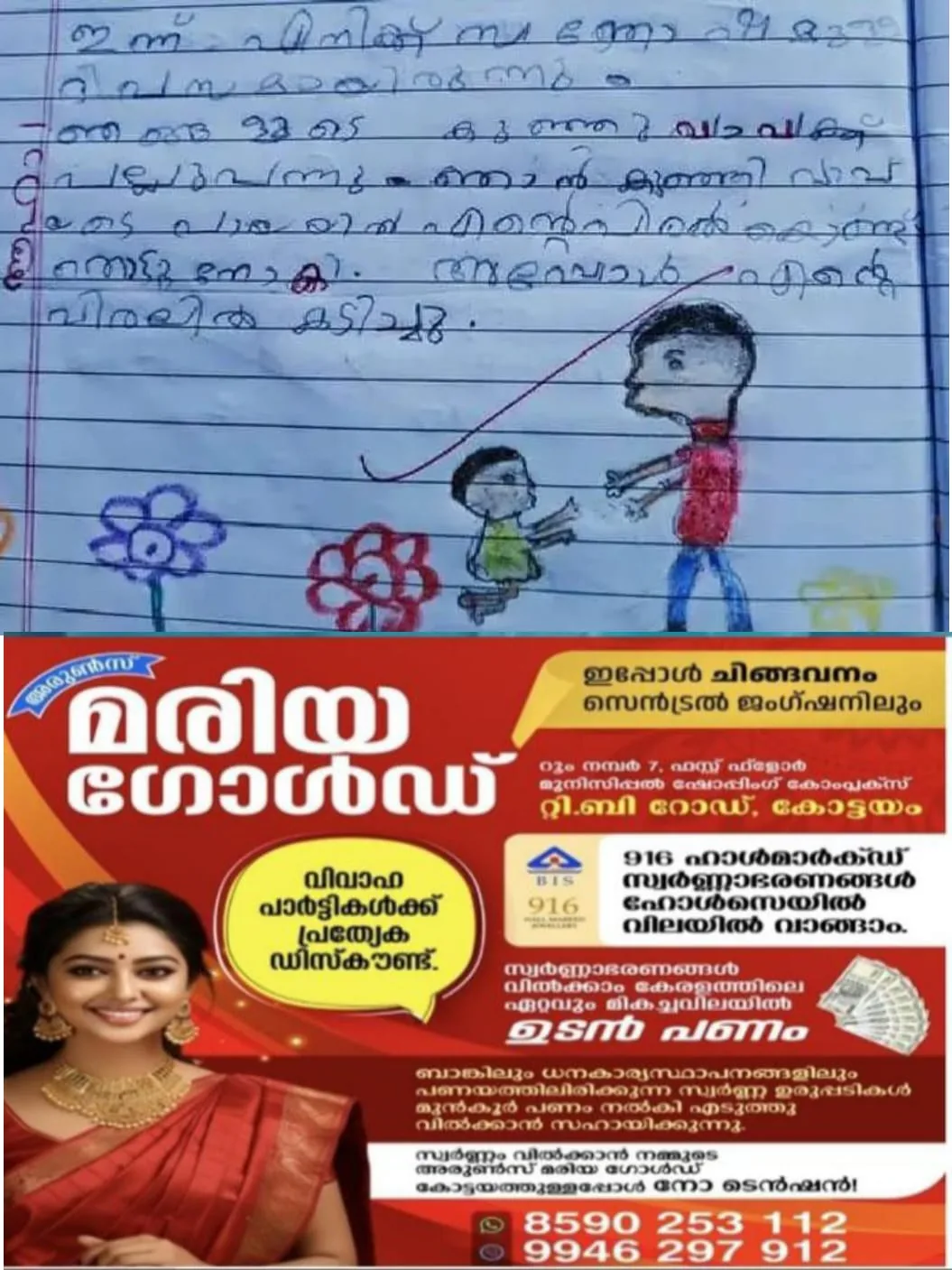 മണ്ണാർക്കാടിലെ കുമരംപുത്തൂർ ഗവ. എല്പി സ്കൂള് അധ്യാപികയായ സൗമ്യ എം ആണ് ഈ ഡയറിക്കുറിപ്പ് ഫേസ്ബുക്കില് പങ്കുവച്ചിരിക്കുന്നത്. മൂന്നാം ക്ലാസ് വിദ്യാർത്ഥിയായ മുസമ്മില് എഴുതിയതാണ് കുറിപ്പ്. അവനൊരു വലിയ വിശേഷമാണ് പങ്കുവയ്ക്കാനുണ്ടായിരുന്നത് അവന്റെ വീട്ടിലെ, അവന്റെ പ്രിയപ്പെട്ട കുഞ്ഞുവാവയ്ക്ക് പല്ലു വന്നു. ആ സന്തോഷമാണ് അവൻ തന്റെ ഡയറിയില് എഴുതിയിരിക്കുന്നത്. ജൂണ് 28 വെള്ളിയാഴ്ച ദിവസത്തെ ഡയറിക്കുറിപ്പാണത്.
