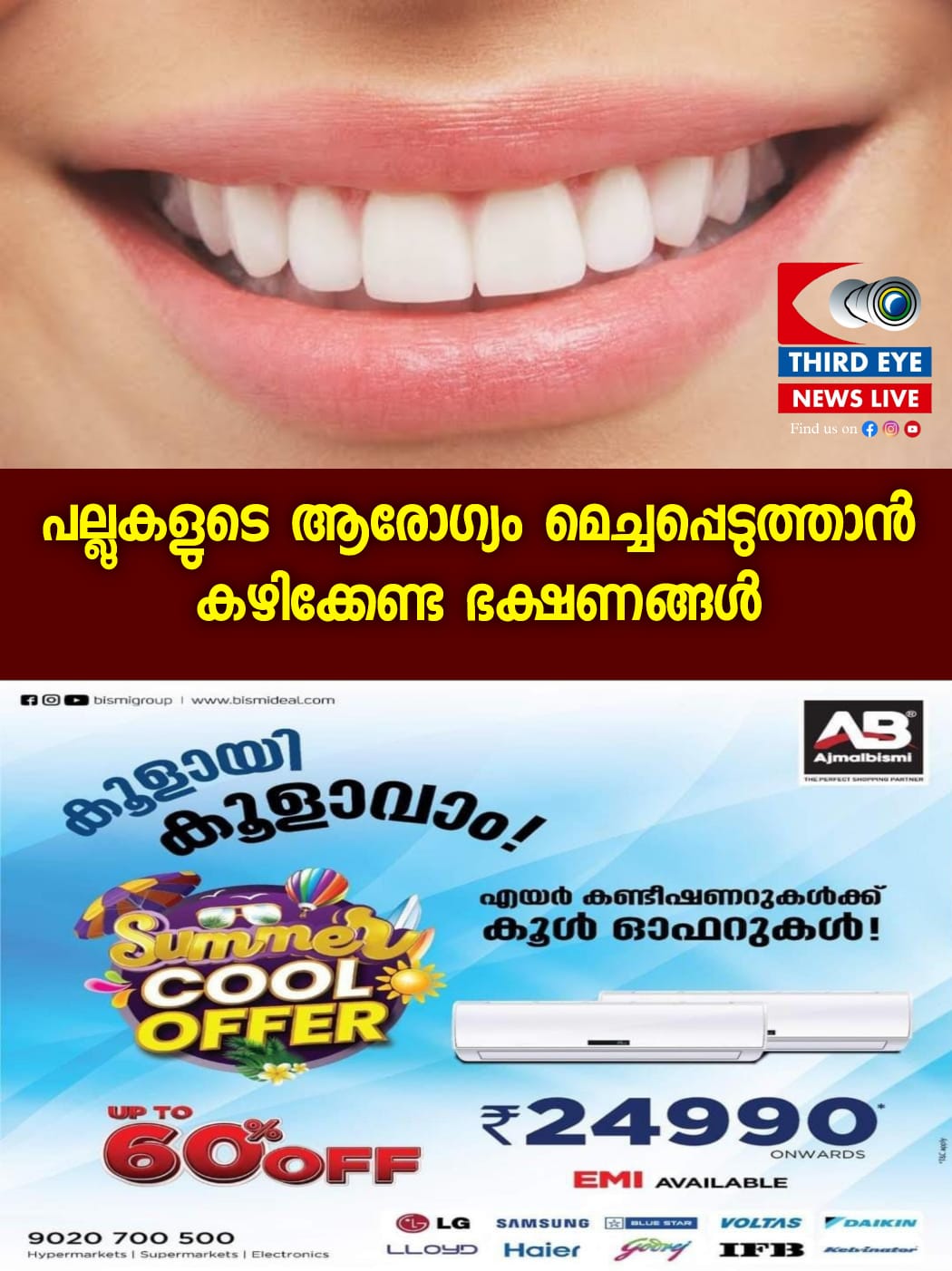 പൊതുവായ ആരോഗ്യത്തിൽ പല്ലുകളുടെയും, വായയുടെയും ആരോഗ്യം ഏറ്റവും പ്രധാനപ്പെട്ട ഒന്നാണെന്ന് കാര്യം പലർക്കും വേണ്ടത്ര അറിവുള്ള കാര്യമില്ല. ദന്തക്ഷയവും മോണരോഗങ്ങളും ഉണ്ടാകാനുള്ള കാരണങ്ങളിൽ നാം കഴിക്കുന്ന ഭക്ഷണത്തിനും വളരെ പ്രധാന പങ്കുണ്ട്.പല്ലുകളെ സംരക്ഷിക്കുന്ന ‘ഇനാമല്’ എന്ന ആവരണത്തിന്റെ ആരോഗ്യത്തിനും അതുവഴി പല്ലുകള് ആരോഗ്യത്തോടെ ഇരിക്കാനും ഡയറ്റില് ഉള്പ്പെടുത്തേണ്ട ചില ഭക്ഷണങ്ങള് ഏതൊക്കെയാണെന്ന് നോക്കാം.