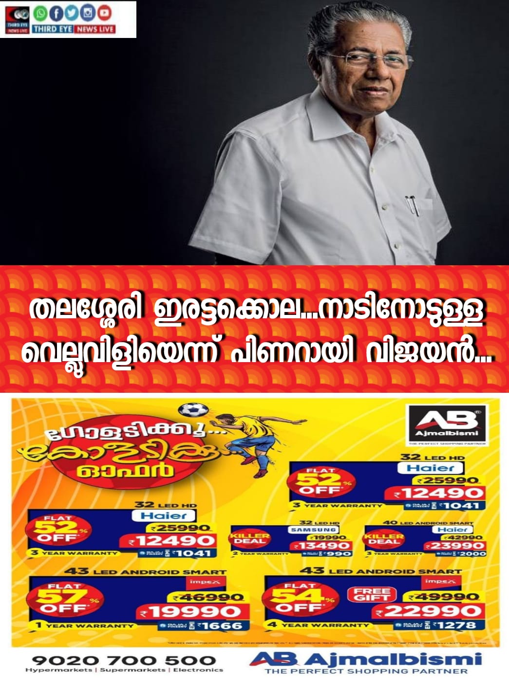 നാടിനോടുള്ള വെല്ലുവിളിയായാണ് ഇതിനെ കാണേണ്ടത്. കുറ്റവാളികള്ക്കെതിരെ കര്ശനമായ നിയമനടപടികളുണ്ടാവും. പഴുതടച്ചുള്ള അന്വേഷണത്തിലൂടെയും പൊലീസ് എക്സൈസ് വകുപ്പുകളുടെ ഇടപെടലുകളിലൂടെയും ഇത്തരം സംഘങ്ങളെ അമര്ച്ച ചെയ്യും. അതോടൊപ്പം ഈ പോരാട്ടത്തില് അണിചേരുന്നവര് ഇത്തരത്തില് ആക്രമിക്കപ്പെട്ടു കൂടാ എന്ന ബോധം സമുഹത്തിലാകെ ഉയര്ന്നു വരണം. അവരും അവരുടെ കുടുംബാംഗങ്ങളും നിസ്സഹായാവസ്ഥയില് എത്തിക്കൂടാ. അവര്ക്ക് കൈത്താങ്ങ് നല്കാന് നമുക്കാകെ ഉത്തരവാദിത്വമുണ്ട്. ഇതിന് ജനങ്ങളുടെയാകെ പിന്തുണയുണ്ടാകാമെന്ന് സര്ക്കാരിന് ബോധ്യമുണ്ട്. നമ്മുടെ നാടിനെയും വരും തലമുറകളെയും ഒരു മഹാവിപത്തില് നിന്ന് രക്ഷിക്കാന് ഒരുമിച്ചു പോരാടാം. തലശേരിയില് കൊല്ലപ്പെട്ടവരുടെ കുടുംബാംഗങ്ങളെയും ബന്ധുമിത്രാദികളെയും അനുശോചനം അറിയിക്കുന്നെന്നും മുഖ്യമന്ത്രി അറിയിച്ചു.
