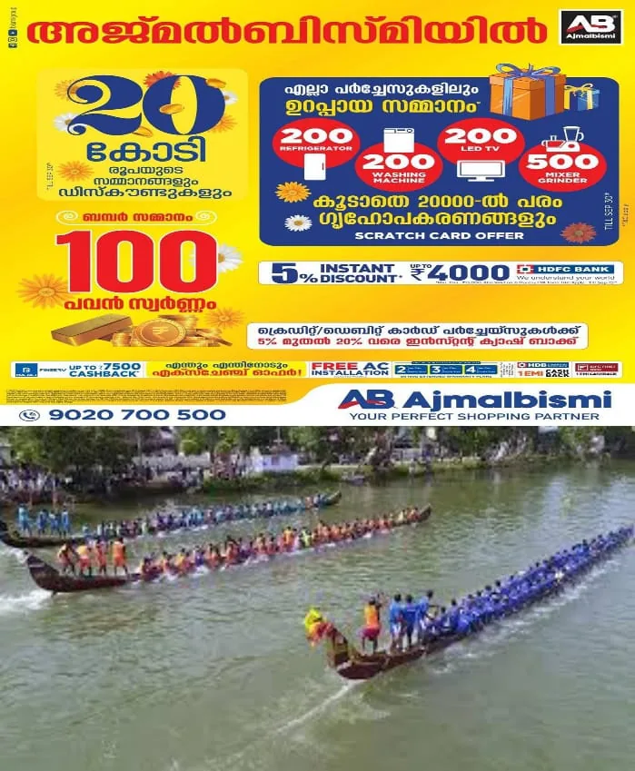 താഴത്തങ്ങാടി: ഒക്ടോബർ 6 ന് നടത്തുവാൻ തീരുമാനിച്ചിരുന്ന കോട്ടയം താഴത്തങ്ങാടി മത്സര വള്ളംകളി മാറ്റിവെച്ചു.