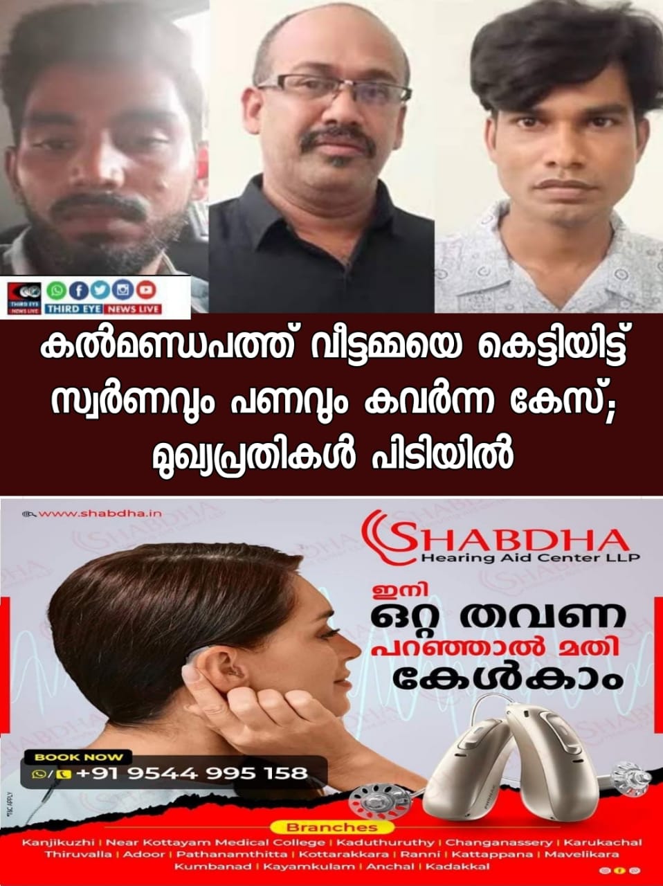 സംഭവത്തില് മോഷ്ടിച്ച സ്വര്ണം സ്വർണം വിൽക്കാൻ സഹായിച്ച വടവന്നൂർ കൂത്തൻപാക്കം വീട്ടിൽ സുരേഷ് (34), വിജയകുമാർ (42), നന്ദിയോട് അയ്യപ്പൻചള്ള വീട്ടിൽ റോബിൻ (31), വണ്ടിത്താവളം പരുത്തിക്കാട്ടുമട പ്രദീപ് (38) എന്നിവരെയാണ് കസബ പൊലീസ് അറസ്റ്റ് ചെയ്തത്.ഇവരെ പിടികൂടിയതിൽ നിന്നാണ് മുഖ്യപ്രതികളിലേക്കുള്ള സൂചന ലഭിച്ചത്.