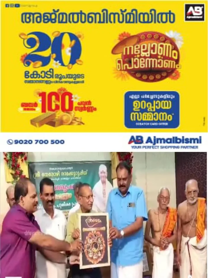 ക്ഷേത്രവാദ്യകലാ വാദ്യകുലപതി തേരോ ഴി രാമക്കുറുപ്പിന് തിരുവതാംകൂർ രാജമുദ്ര ചാർത്തിയ വീരശ്രംഖല സമർപ്പിക്കുന്നതിനു മുന്നോടിയായിയുള്ള വിളംബരപത്രികാ പ്രകാശനം