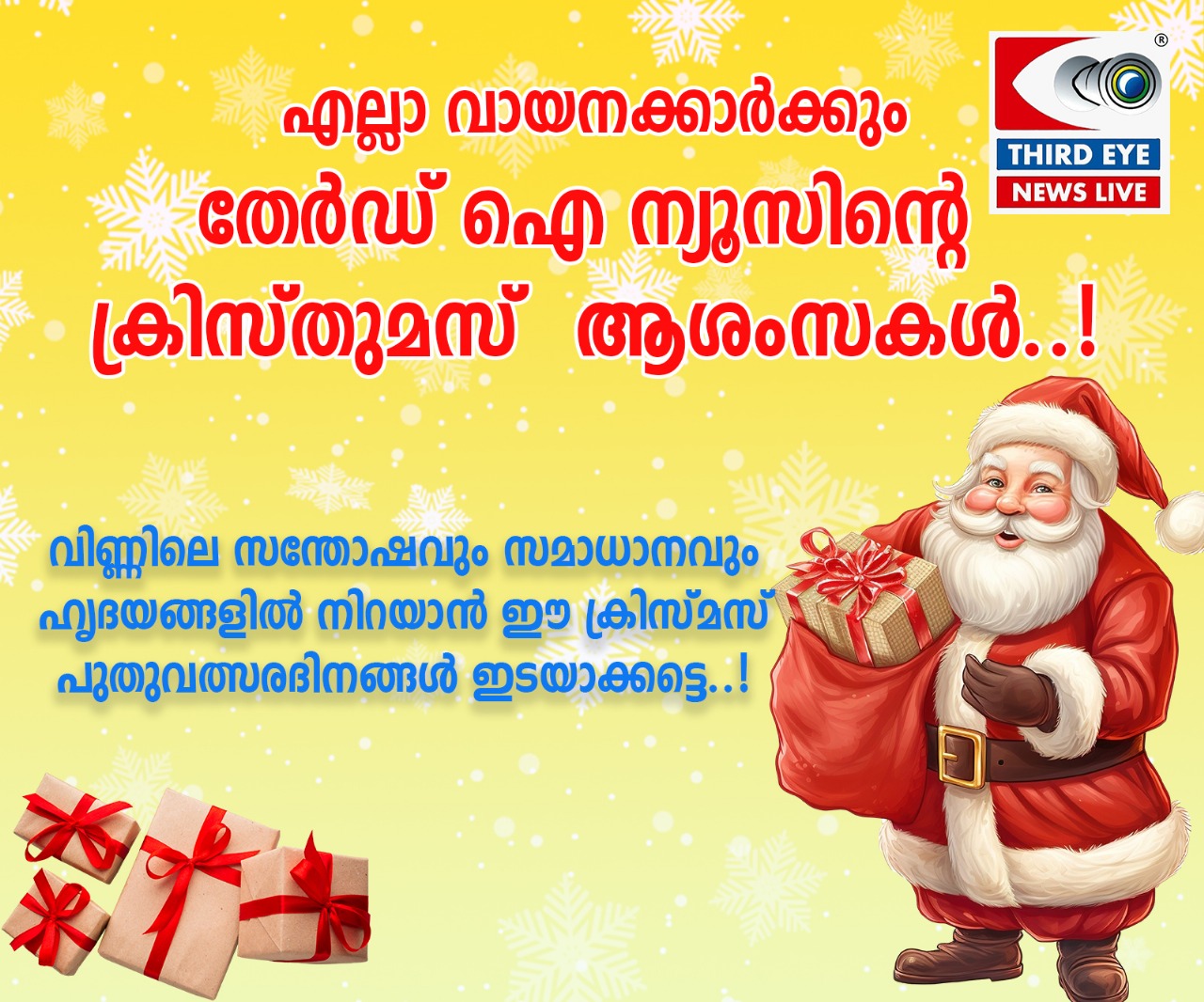 തിന്മയെ മറികടന്ന് നന്മ ജയിക്കാന് സ്വന്തം ജീവന് വില നല്കേണ്ടി വന്ന, യേശു ക്രിസ്തുവിന്റെ ജന്മ ദിനമാഘോഷിയ്ക്കാന് നാടെങ്ങും ഒരുങ്ങിക്കഴിഞ്ഞു; എല്ലാ വായനക്കാർക്കും തേർഡ് ഐ ന്യൂസിന്റെ ക്രിസ്തുമസ് ആശംസകൾ December 24, 2025 WhatsAppFacebookTwitterLinkedin Spread the loveകോട്ടയം: ശാന്തിയുടെയും സമാധാനത്തിന്റെയും ആഘോഷമായ ക്രിസ്തുമസിനെ ആഘോഷത്തോടെ വരവേറ്റിരിക്കുകയാണ് നാടും നഗരവും . എല്ലാ വായനക്കാർക്കും തേർഡ് ഐ ന്യൂസിന്റെ ക്രിസ്തുമസ് ആശംസകൾ Please enable JavaScriptplay-sharp-fill LinkEmbedCopy and paste this HTML code into your webpage to embed.