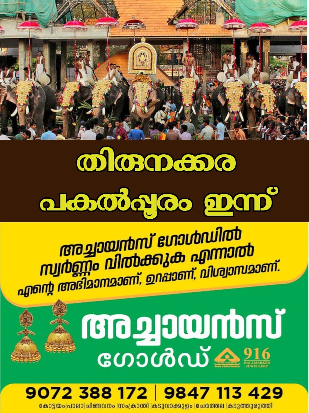 പൂരത്തോടനുബന്ധിച്ച് പൊലീസും ക്ഷേത്രസമിതിയും ചേർന്ന് വലിയ സുരക്ഷയാണ് തിരുനക്കരയിൽ ഒരുക്കിയിട്ടുള്ളത്. പൂരത്തോട് അനുബന്ധിച്ച് ഇന്ന് ഉച്ചമുതൽ കോട്ടയം നഗരത്തിൽ ഗതാഗ നിയന്ത്രിക്കും