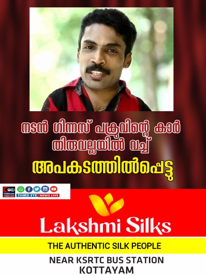 തിരുവല്ല; നടന് ഗിന്നസ് പക്രുവിന്റെ കാര് തിരുവല്ലയിൽ അപകടത്തില്പ്പെട്ടു.