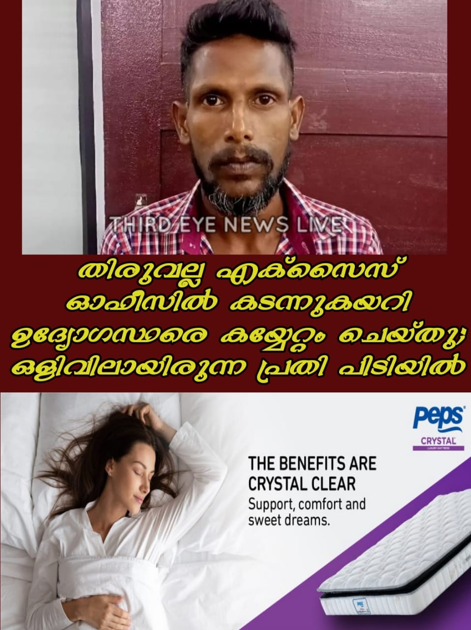 തിരുവല്ല: എക്സൈസ് ഓഫീസില് കടന്ന് കയറി ഉദ്യോഗസ്ഥരെ കൈയ്യേറ്റം ചെയ്ത കേസില് ഒളിവിലായിരുന്ന പ്രതി അറസ്റ്റില്. കവിയൂര് മത്തിമല വേഴു കാലായില് വീട്ടില് ജ്യോതിഷ് (32) ആണ് പിടിയിലായത്.