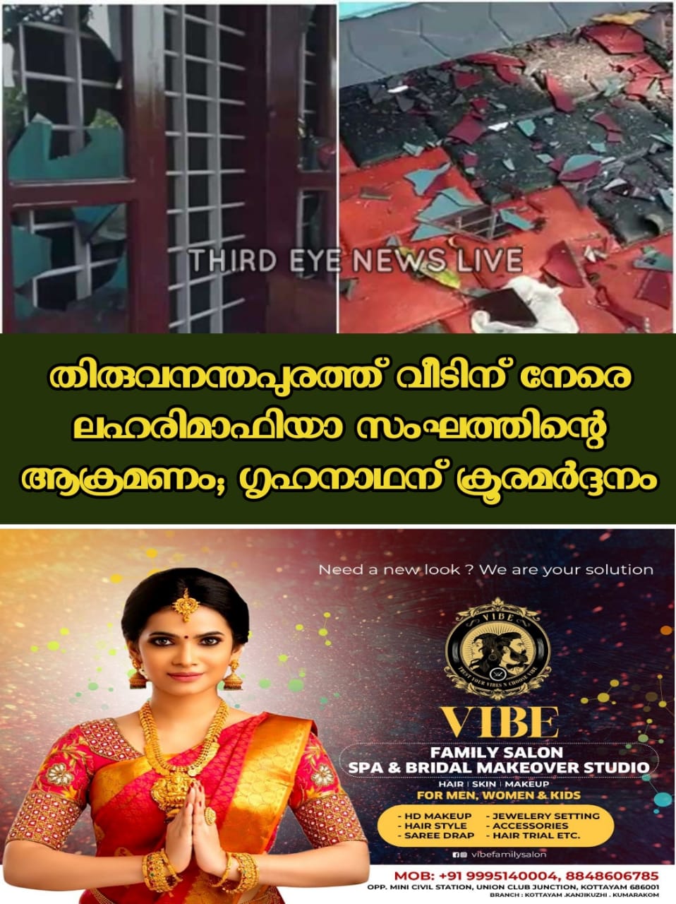 തിരുവനന്തപുരം: ലഹരി മാഫിയ സംഘം വീട് അടിച്ച് തകര്ക്കുകയും വീട്ടിലുണ്ടായിരുന്നവരെ ആക്രമിക്കുകയും ചെയ്തതായി പരാതി. കണ്ടല സ്റ്റേഡിയത്തിനു സമീപം അല്നൂര് വീട്ടില് റഹിം(50), റഹീമിന്റെ ബന്ധു സൈനബ(63) എന്നിവര്ക്കാണ് മര്ദനമേറ്റത്.