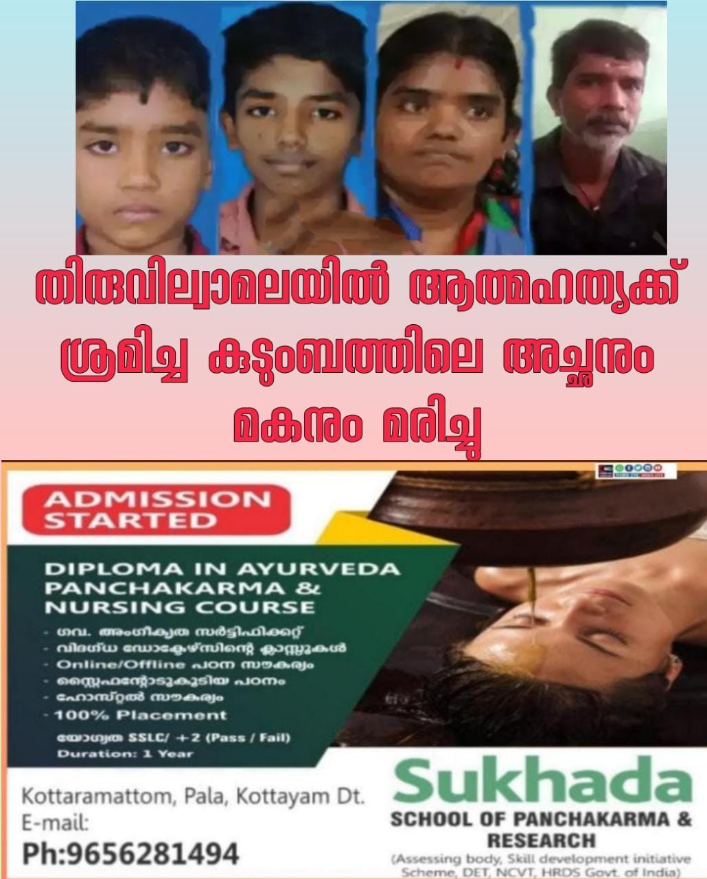 തൃശൂർ തിരുവില്വാമലയിലെ കൂട്ട ആത്മഹത്യാശ്രമം ;അമ്മയ്ക്കും മകനും പിന്നാലെ അച്ഛനും മകനും മരണത്തിന് കീഴടങ്ങി