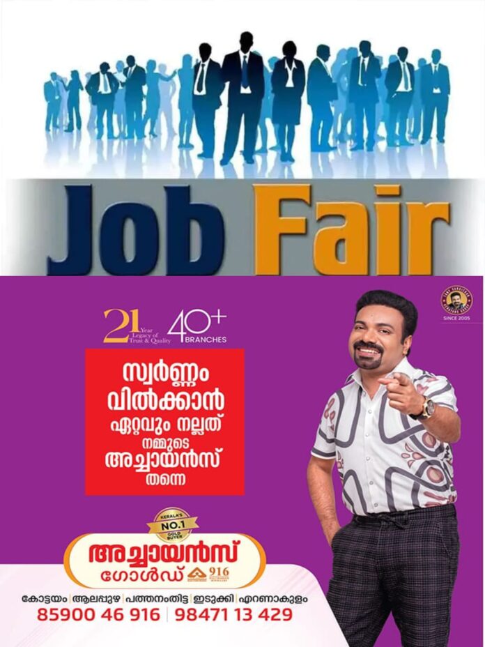 ഉദ്യോഗാർഥികള് യോഗ്യതാ രേഖകളുടെ പകർപ്പുകളും ബയോഡാറ്റയും നല്കണം. തൊഴില്മേളയുടെ ഭാഗമായി അഭിമുഖവും ഓറിയന്റേഷൻ പരിപാടിയും സംഘടിപ്പിച്ചിട്ടുണ്ട്. ഫോണ്: 04812302049