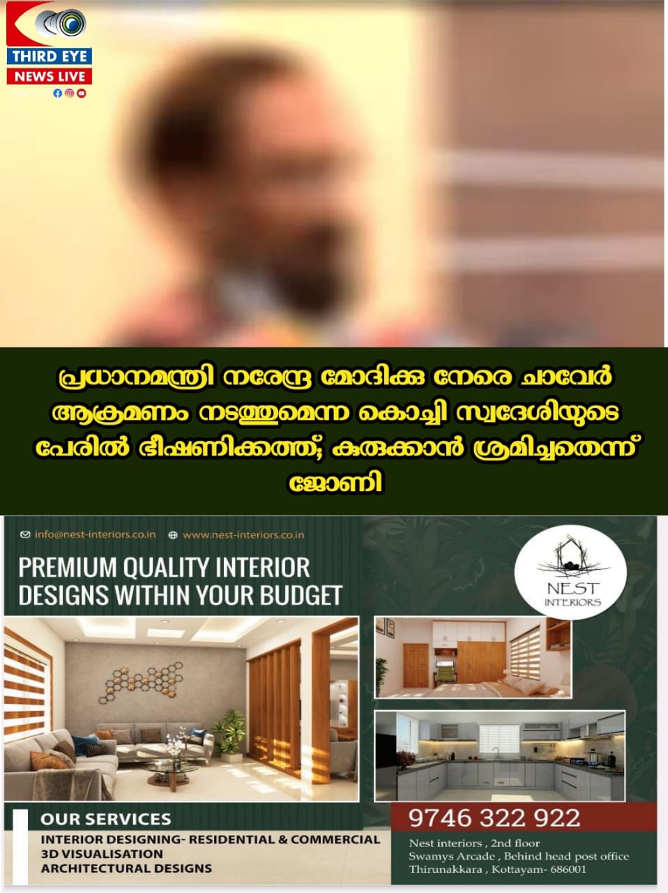 കൊച്ചി: പ്രധാനമന്ത്രി നരേന്ദ്ര മോദിക്കു നേരെ ചാവേർ ആക്രമണം നടത്തുമെന്ന കൊച്ചി സ്വദേശിയുടെ പേരിൽ ഭീഷണിക്കത്ത് സംഭവത്തിന്റെ കൂടുതൽ വിവരങ്ങൾ പുറത്ത്. കുടുംബ യൂണിറ്റിലെ തർക്കമാണ് തന്റെ പേരിൽ പ്രധാനമന്ത്രിക്കെതിരെ ഭീഷണിക്കത്തെഴുതാൻ പ്രേരണയായതെന്നു സംശയിക്കുന്നതായി കത്തിൽ പേരുള്ള ജോണി ജോസഫ്. ആരാണ് കത്ത് എഴുതിയത് എന്ന സംശയം പൊലീസിനെ അറിയിച്ചിട്ടുണ്ടെന്ന് ജോണി മാധ്യമപ്രവർത്തകരോടു പറഞ്ഞു.