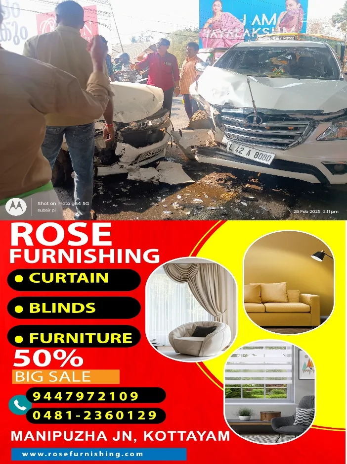 പാലായിൽ നിന്നെത്തിയ കർണാടക സ്വദേശികൾ സഞ്ചരിച്ച കാറും തൃപ്പൂണിത്തുറ സ്വദേശികൾ സഞ്ചരിച്ച കാറും തമ്മിൽ കൂട്ടിയിടിക്കുകയായിരുന്നു.