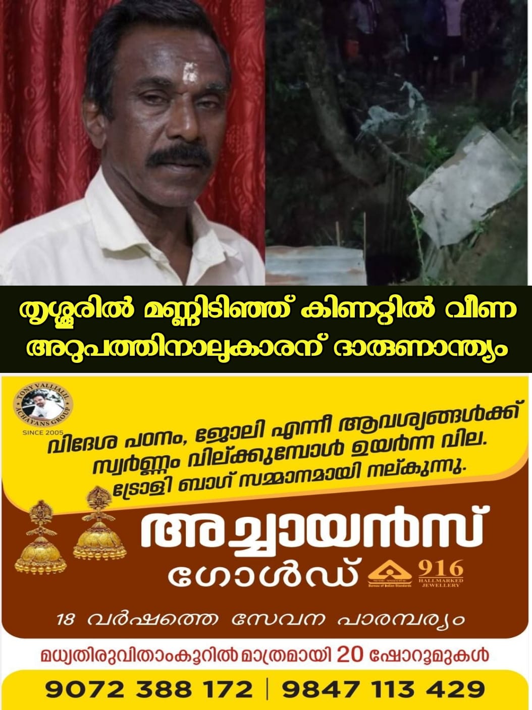 വത്സലയെ രക്ഷപ്പെടുത്തി തൃശൂർ ജില്ലാ ആശുപത്രിയിൽ പ്രവേശിപ്പിച്ചു. വത്സലയ്ക്ക് കാര്യമായ പരിക്കുകളില്ല. പ്രഭാകരനെ മൂന്നു മണിക്കൂറിലധികം നീണ്ട ശ്രമത്തിനൊടുവിൽ പുറത്തെത്തിച്ചെങ്കിലും ജീവൻ രക്ഷിക്കാനായില്ല. ജോലി കഴിഞ്ഞ് തിരിച്ചു വരുന്ന വഴിയാണ് കാലുതെറ്റി കിണറ്റിൽ വീഴുന്നത്. ഇയാൾ മദ്യപിച്ചിരുന്നതായും വിവരമുണ്ട്. മൃതദേഹം തൃശൂർ ജില്ലാ ആശുപത്രിയിൽ പ്രവേശിപ്പിച്ചു.