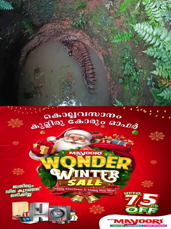 ഇന്നലെ വൈകിട്ടാണ് കടുവ കിണറ്റില് വീണതെന്നാണ് സംശയം. ഉപയോഗശൂന്യമായ കിണറാണിതെന്നാണ് വിവരം. വിവരമറിഞ്ഞ് വനംവകുപ്പ് ഉദ്യോഗസ്ഥർ സ്ഥലത്തെത്തി കടുവയെ പുറത്തെത്തിക്കാനുള്ള ശ്രമം തുടരുകയാണ്.