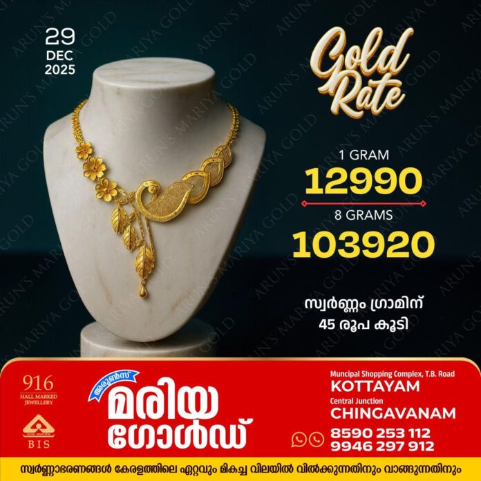 കോട്ടയം അരുൺസ് മരിയ ഗോൾഡിലെ ഇന്നത്തെ സ്വർണ്ണവില അറിയാം.