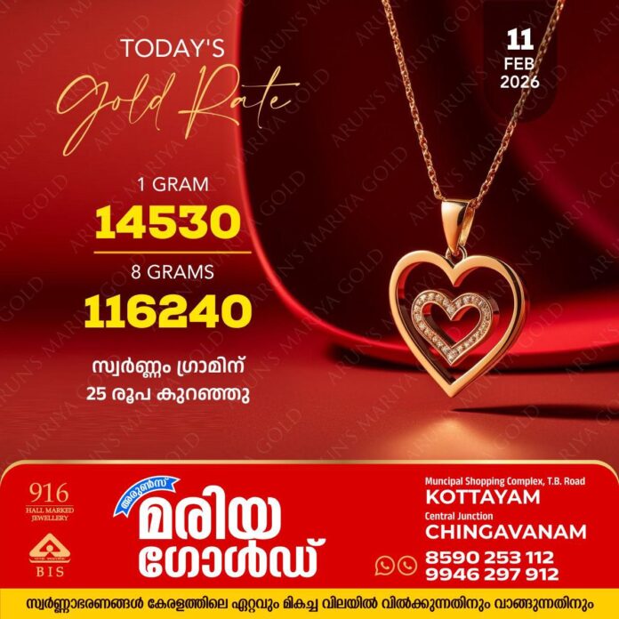 കോട്ടയം അരുൺസ് മരിയ ഗോൾഡിലെ ഇന്നത്തെ സ്വർണ്ണവില അറിയാം.