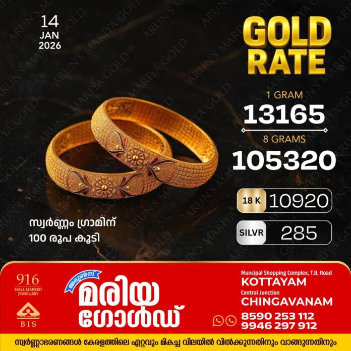കോട്ടയം അരുൺസ് മരിയ ഗോൾഡിലെ ഇന്നത്തെ സ്വർണ്ണവില അറിയാം.