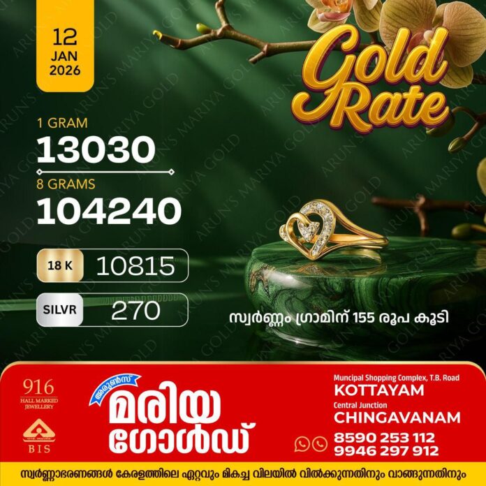 കോട്ടയം അരുൺസ് മരിയ ഗോൾഡിലെ ഇന്നത്തെ സ്വർണ്ണവില അറിയാം.