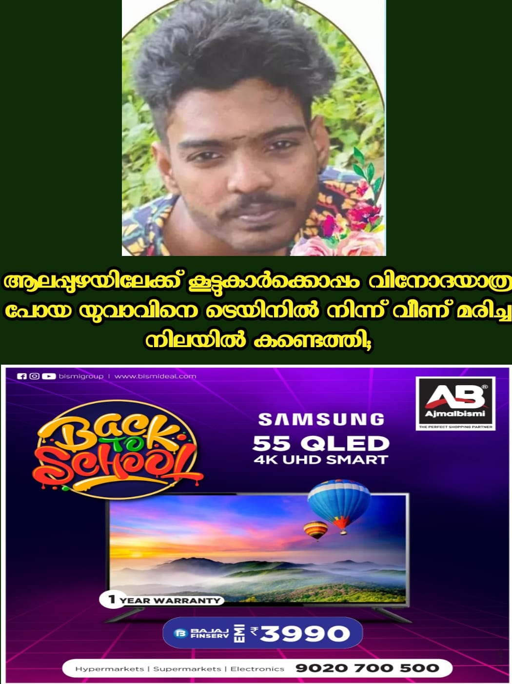 ചിറ്റിശേരി എറവക്കാട് ഗേറ്റിന് സമീപത്തെ റെയിൽവേ പാളത്തിൽ ഞായറാഴ്ച രാവിലെയാണ് മൃതദേഹം കണ്ടത്. സുഹൃത്തുക്കളോടൊപ്പം ആലപ്പുഴയിലേക്ക് വിനോദയാത്ര പോയതായിരുന്നു.