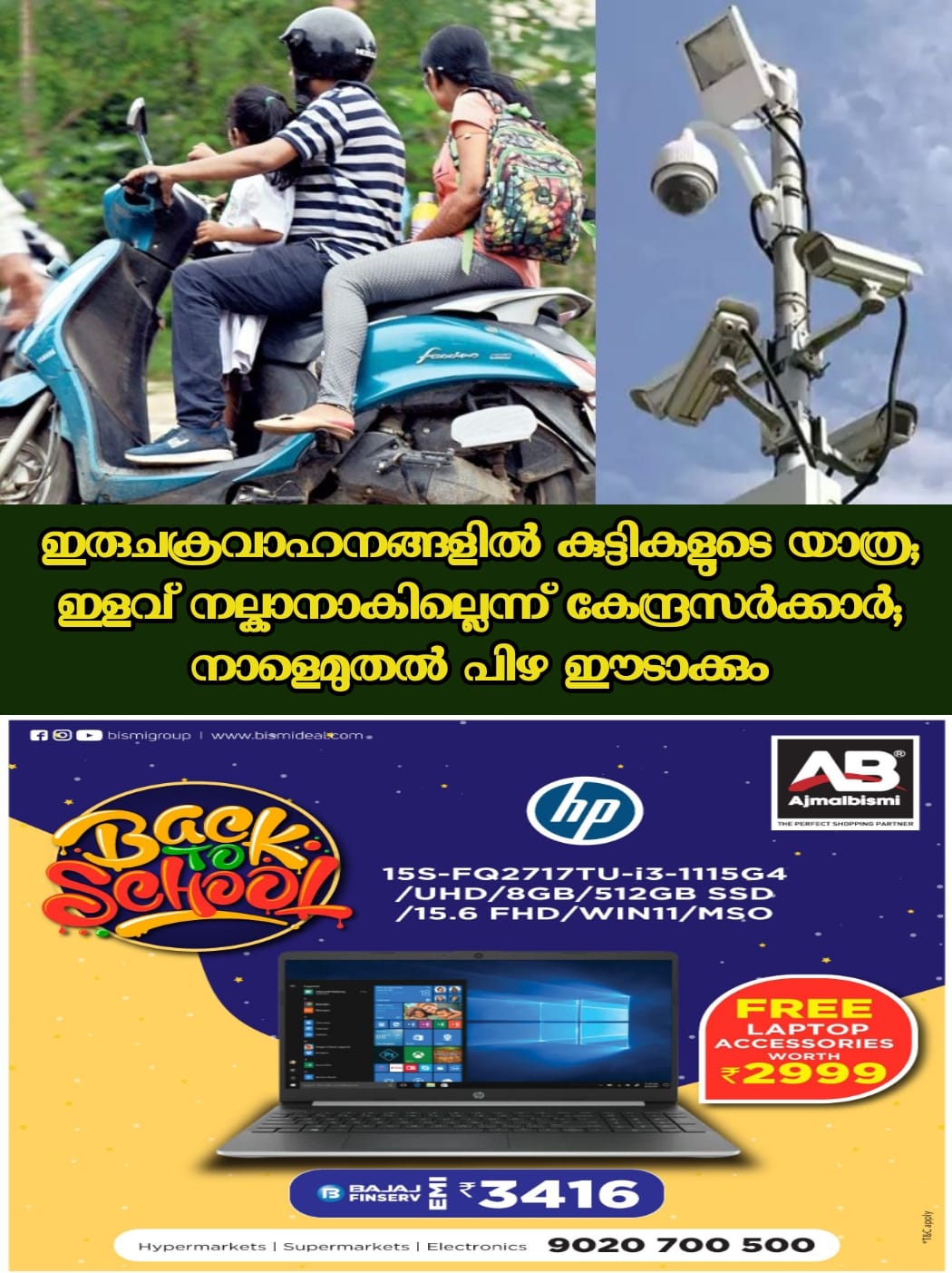 ഇരുചക്രവാഹനങ്ങളിൽ കുട്ടികളുടെ യാത്ര; ഇളവ് നല്കാനാകില്ലെന്ന് കേന്ദ്രസർക്കാർ; നാളെമുതൽ പിഴ ഈടാക്കും