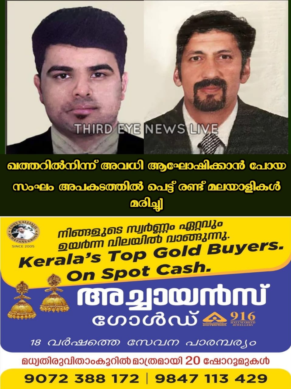ഖത്തറിൽനിന്ന് ബഹ്​റൈനിലേക്ക്​ പെരുന്നാൾ അവധി ആഘോഷിക്കാൻ പോയ വാഹനം അപകടത്തിൽപെട്ടു;​ കോട്ടയം, മലപ്പുറം സ്വദേശികളായ യുവാക്കൾക്ക് ദാരുണാന്ത്യം