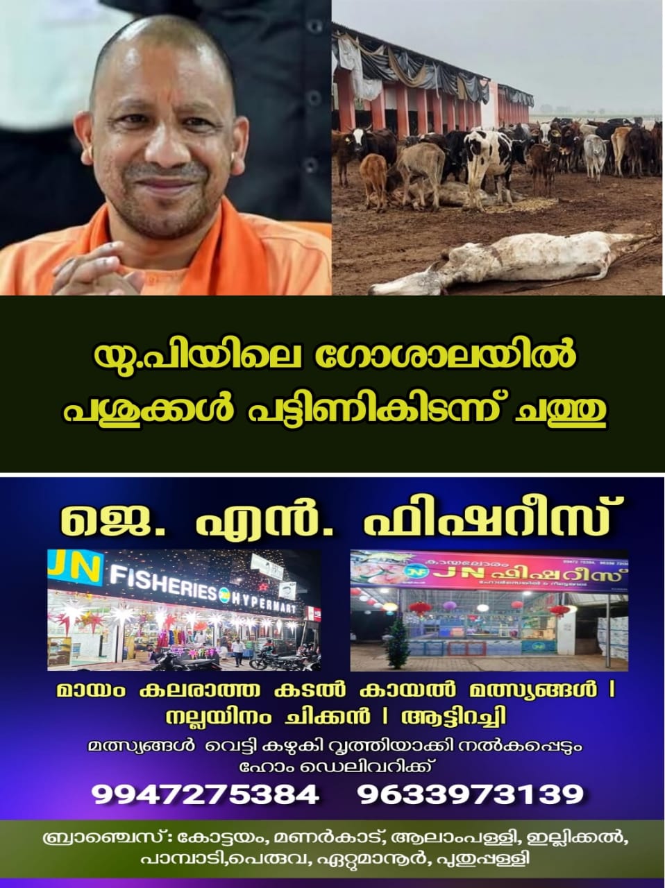 ഉത്തർപ്രദേശ്; കാസ്ഗഞ്ച് ജില്ലയിൽ സർക്കാർ ഉടമസ്ഥതയിലുള്ള ഗോശാലയിൽ പത്തോളം പശുക്കൾ പട്ടിണികിടന്ന് ചത്തതായി ആരോപണം. അധികൃതരുടെ അശ്രദ്ധ കാരണമാണ് പശുക്കൾ കൂട്ടത്തോടെ ചത്തതെന്ന് നാട്ടുകാർ ആരോപിക്കുന്നു. സംഭവത്തിന്റെ വിഡിയോ വൈറലായതിനെ തുടർന്ന് നാട്ടുകാർ പ്രതിഷേധവുമായി രംഗത്തെത്തി.